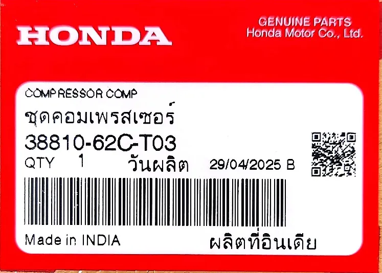 Đối với phụ tùng nhập khẩu, ngoài tem tiếng Việt của Honda Việt Nam thì đều có thêm tem thể hiện xuất xứ nước nhập khẩu: