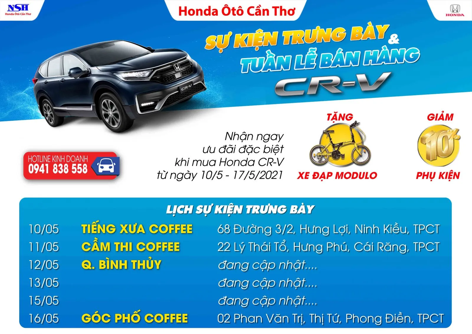 3. Danh sách các điểm trưng bày Honda CR-V tại TP. Cần Thơ